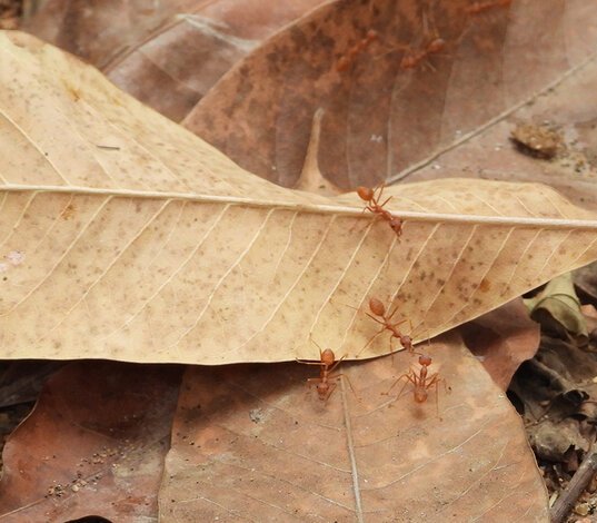 Red weaver ants are master builders of the insect world. Instead of nesting underground, these arboreal ants live high up in trees, weaving living leaves together using silk secreted by their larvae.