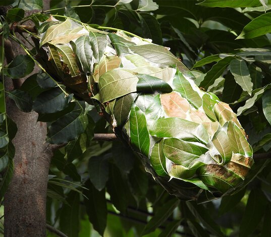 Red weaver ants are master builders of the insect world. Instead of nesting underground, these arboreal ants live high up in trees, weaving living leaves together using silk secreted by their larvae.
